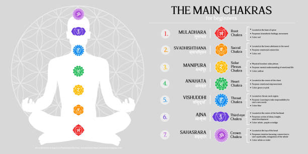 Une ancienne philosophie hindoue affirme que notre corps est influencé physiquement et émotionnellement par sept chakras situés en nous. Chaque chakra possède un emplacement précis – gorge, base de la colonne vertébrale, plexus solaire, etc. – et une couleur associée, rouge pour le chakra racine et vert pour le chakra du cœur par exemple.